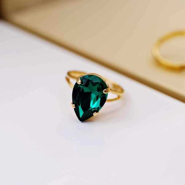 Ένα εντυπωσιακό δαχτυλίδι με λαμπερή πράσινη πέτρα σε σχήμα δάκρυ. Η έντονη απόχρωση και ο elegant χρυσός συνδυασμός το κάνουν ιδανικό για ξεχωριστές εμφανίσεις.