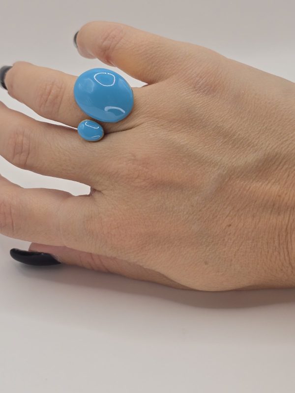 Πρόσθεσε χρώμα και κομψότητα στις εμφανίσεις σου με αυτό το εντυπωσιακό δαχτυλίδι με διπλό τυρκουάζ στοιχείο. Ο μοντέρνος σχεδιασμός του με δύο στρογγυλές λεπτομέρειες διαφορετικού μεγέθους προσφέρει ένα φρέσκο και σύγχρονο αποτέλεσμα, ενώ το έντονο μπλε χρώμα τραβά τα βλέμματα και αναδεικνύει κάθε στιλ.