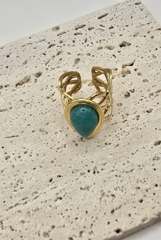 Εμπνευσμένο από τη φυσική ομορφιά του Αιγαίου, το “Aegean Stone” είναι ένα ξεχωριστό δαχτυλίδι με τυρκουάζ πέτρα σε αχλαδόσχημο κόψιμο και περίτεχνο, ανοιχτό σχέδιο στο πλάι. Η λαμπερή του απόχρωση και η οργανική δομή του συνδυάζουν τη φρεσκάδα της φύσης με την κομψότητα του σύγχρονου design.