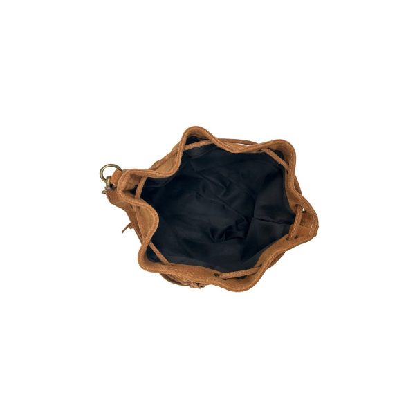 Η τσάντα κλείνει με δερμάτινο κορδόνι, εξασφαλίζοντας ασφάλεια και εύκολη πρόσβαση, ενώ ο ρυθμιζόμενος λουρί ώμου επιτρέπει να τη φορέσεις όπως σου ταιριάζει — crossbody ή στον ώμο.