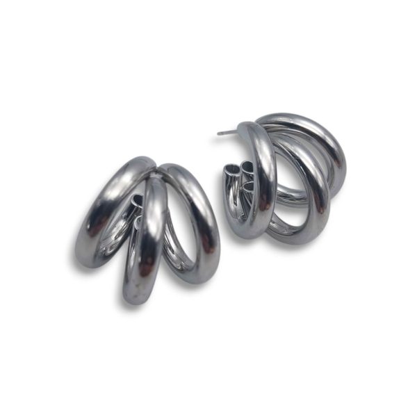 Η στιλπνή μεταλλική επιφάνεια αντανακλά το φως, προσφέροντας διακριτική λάμψη χωρίς υπερβολή. Οι πολλαπλοί κρίκοι δίνουν βάθος και κίνηση στο κόσμημα, κάνοντάς το να δείχνει διαφορετικό από κάθε γωνία. Είναι ένα ζευγάρι σκουλαρίκια που συνδυάζει τον μινιμαλισμό με μια πιο fashion αισθητική, ιδανικό για γυναίκες που αγαπούν τα clean σχέδια με architectural χαρακτήρα.