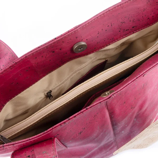 Η κόκκινη tote bag από φυσικό φελλό είναι μια από τις πιο εντυπωσιακές και ταυτόχρονα πρακτικές επιλογές της συλλογής. Ο έντονος κόκκινος τόνος, συνδυασμένος με τη φυσική υφή του φελλού, δημιουργεί ένα αξεσουάρ που εκπέμπει δυναμισμό, θηλυκότητα και μοντέρνα κομψότητα. Το υλικό είναι πανάλαφρο, μαλακό στην αφή αλλά εξαιρετικά ανθεκτικό, ενώ η επιφάνεια του φελλού διατηρεί αυτήν τη μοναδική organica αισθητική που κάνει κάθε κομμάτι φυσικά ξεχωριστό.