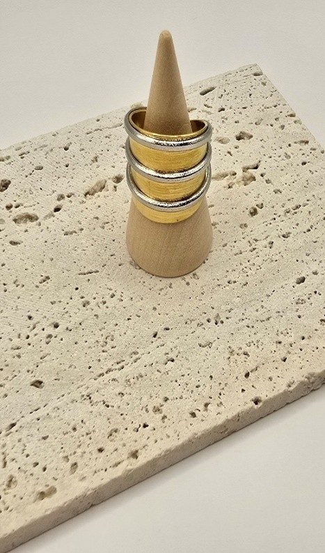 Ένα ξεχωριστό, μοντέρνο δαχτυλίδι με διχρωμία που συνδυάζει ζεστό χρυσό και ψυχρό ασημί, δημιουργώντας μια όμορφη αντίθεση. Η brushed υφή του το κάνει premium και elegant, ενώ το διπλό layering το μετατρέπει σε statement piece.