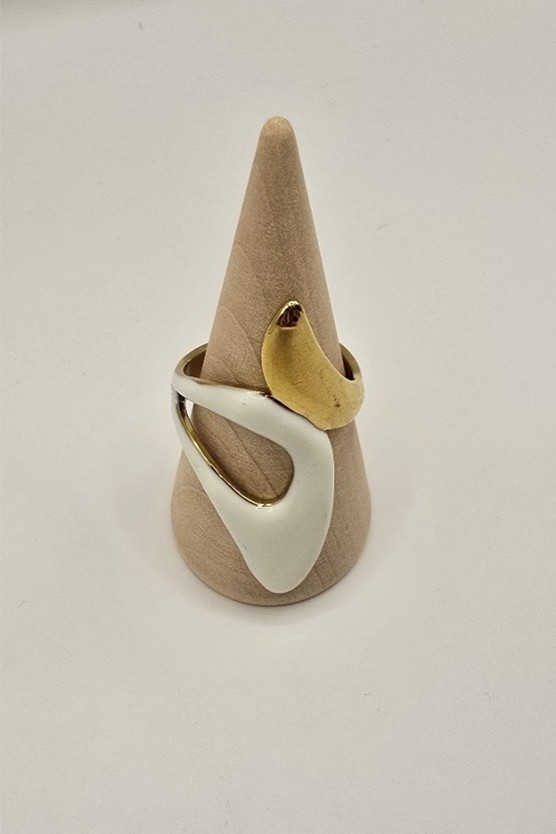Ένα δαχτυλίδι με καλλιτεχνικό χαρακτήρα και τολμηρό σχεδιασμό. Το “Fusion Form” συνδυάζει την κομψότητα του χρυσού με τη μοντέρνα απλότητα του λευκού, σε ένα αφαιρετικό σχήμα που αγκαλιάζει το δάχτυλο σαν γλυπτό.Το “Fusion Form” δεν είναι απλώς ένα δαχτυλίδι – είναι μια δήλωση στυλ και δημιουργικότητας.