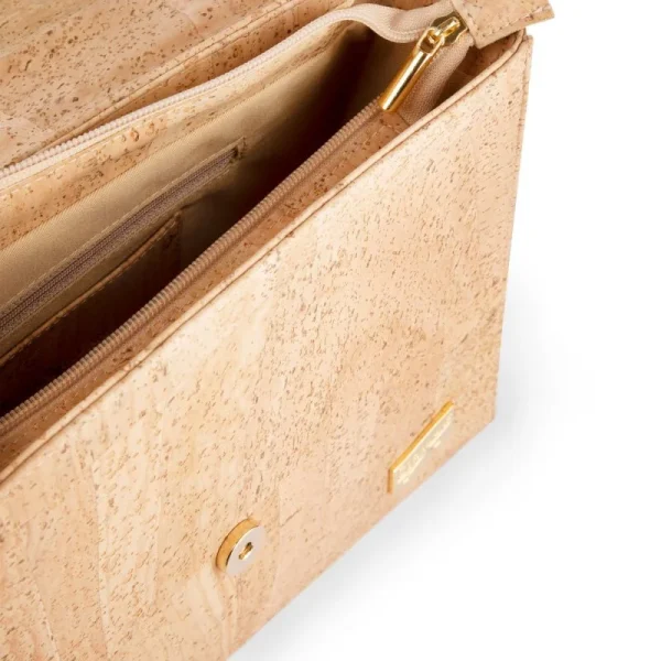 Ο φελλός ως υλικό είναι φυσικά αδιάβροχος, δεν λεκιάζει εύκολα, δεν απορροφά μυρωδιές και καθαρίζεται πανεύκολα, καθιστώντας την ιδανική επιλογή για καθημερινή χρήση — ακόμη κι όταν οι ρυθμοί της ημέρας ανεβαίνουν. Η τσάντα διαθέτει εργονομική χειρολαβή για κράτημα στο χέρι, αλλά και αποσπώμενο, ρυθμιζόμενο λουράκι που σου επιτρέπει να τη φορέσεις στον ώμο ή crossbody. Το καπάκι με τη χαρακτηριστική V γραμμή κλείνει με ασφάλεια και προσδίδει ακόμη μεγαλύτερο χαρακτήρα στο design.