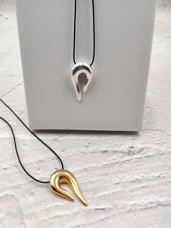 Ατσάλινο Κολιέ Ορμητικό Σχήμα και δερμάτινο κορδόνι