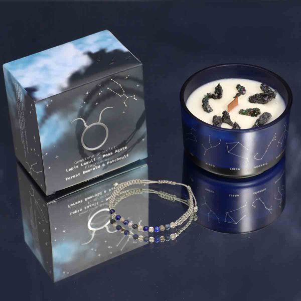 Το κερί με Forest Emerald & Patchouli απελευθερώνει γήινα αρώματα που σε γειώνουν και σε ηρεμούν. Το βραχιόλι με Lapis Lazuli και Moss Agate προάγει την ισορροπία, τη σταθερότητα και τη σύνδεση με τη φύση.